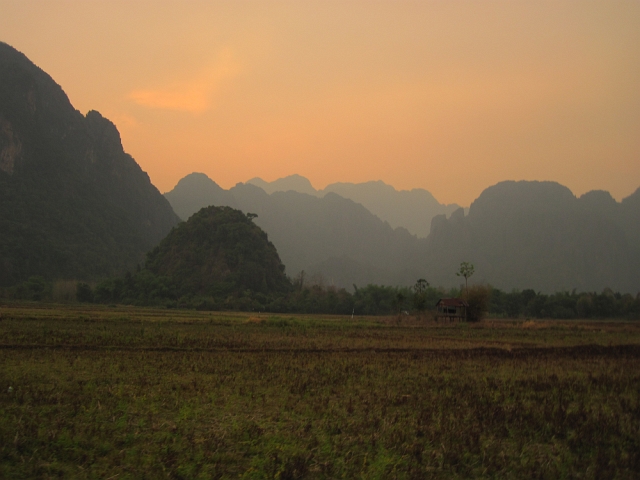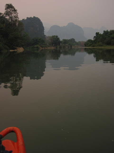 But there's something about Vang Vieng... You expect calm lands in Laos when you go there huh? It's not here! Vang Vieng is all stuffed with americans partying all the time and drinkin and making noise... A big shame really... Therefore village is plenty of bars and commercial music. :(