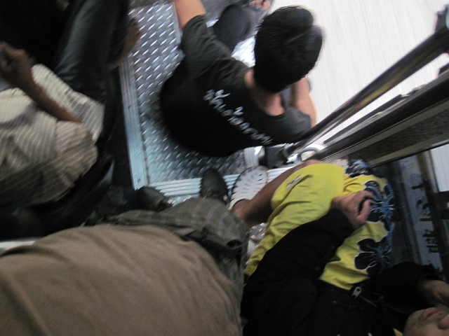 Hello! This is how I arrive to Vientiane, capital of Laos, after a crazy Thailand cross from Cambodia. In the back of a car with other thais!