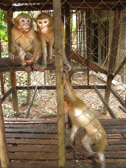 Sad monkeys in jail