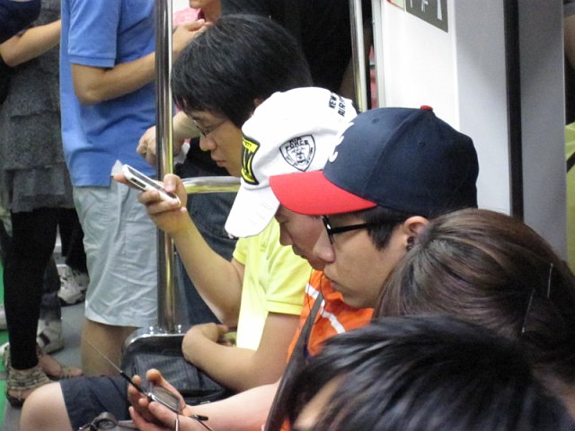 There was something very interesting in South Korea. Everybody had a mobile with tv function. With a tiny antenna they watched programs in metro or street.